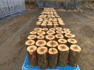 針葉樹(杉・檜)の原木入荷!薪と共にスウェーデントーチを加工します。